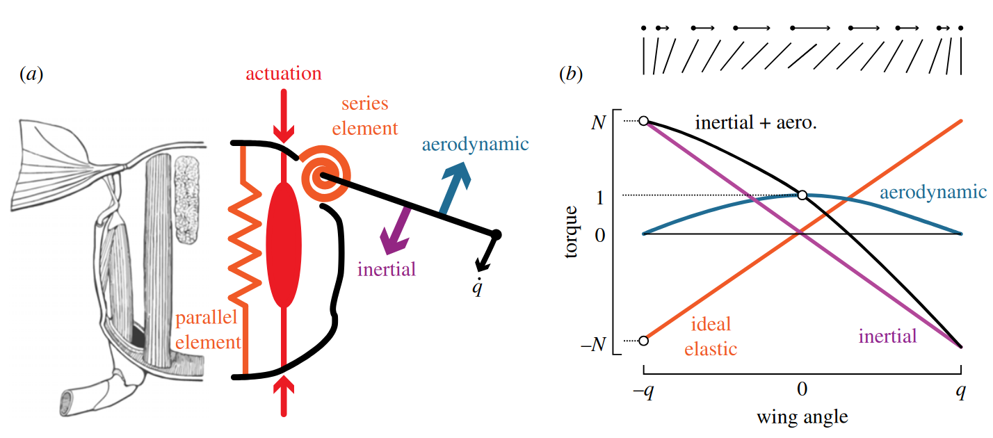 Flapping-wing insects, birds and robots are thought to offset the high power cost of oscillatory wing motion by using elastic elements for energy storage and return. Insects possess highly resilient elastic regions in their flight anatomy that may enable high dynamic efficiency. However, recent experiments highlight losses due to damping in the insect thorax that could reduce the benefit of those elastic elements. We performed experiments on, and simulations of, a dynamically scaled robophysical flapping model with an elastic element and biologically relevant structural damping to elucidate the roles of body mechanics, aerodynamics and actuation in spring-wing energetics. We measured oscillatory flapping-wing dynamics and energetics subject to a range of actuation parameters, system inertia and spring elasticity. To generalize these results, we derive the non-dimensional spring-wing equation of motion and present variables that describe the resonance properties of flapping systems: N, a measure of the relative influence of inertia and aerodynamics, and , the reduced stiffness. We show that internal damping scales with N, revealing that dynamic efficiency monotonically decreases with increasing N. Based on these results, we introduce a general framework for understanding the roles of internal damping, aerodynamic and inertial forces, and elastic structures within all spring-wing systems.
